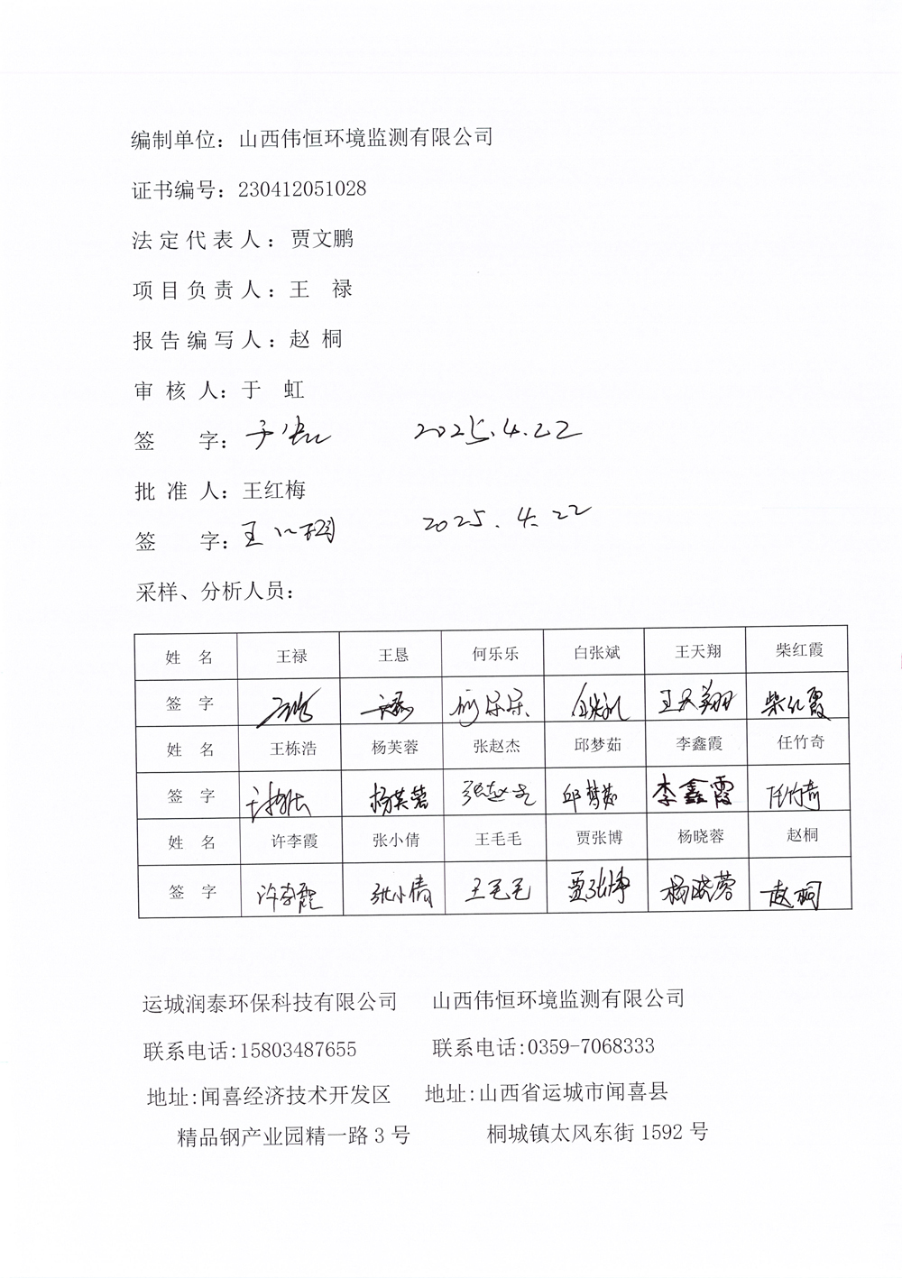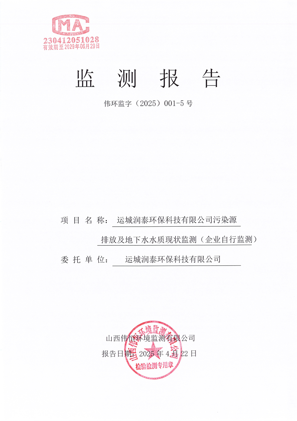2025年潤泰環(huán)保四月份自行監(jiān)測報告