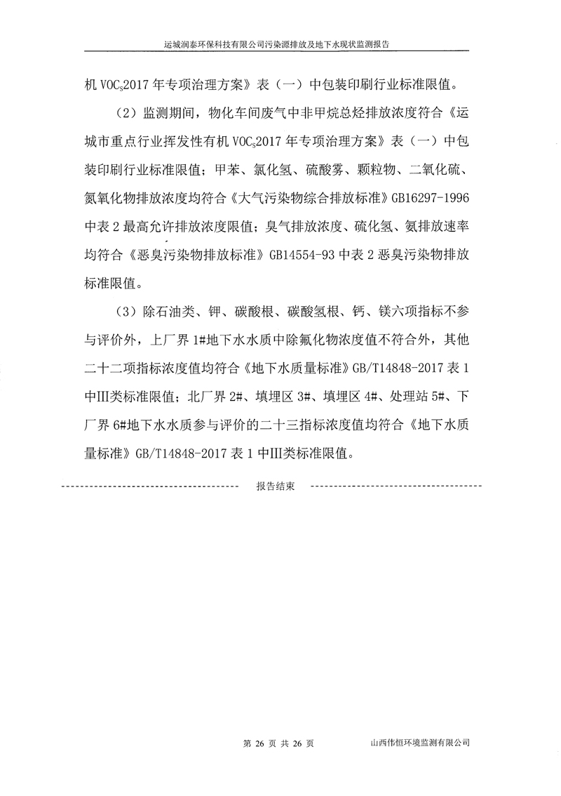 2026年潤泰環(huán)保二月份自行監(jiān)測報告