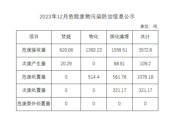 2023年12月危險廢物污染防治信息公示
